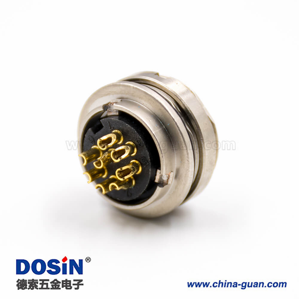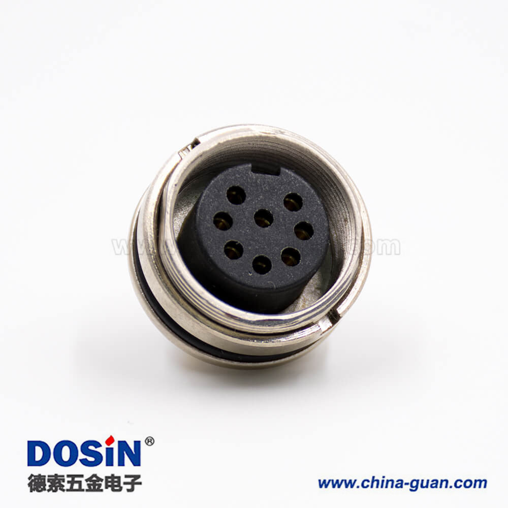 8芯插座引腳M16母頭A扣板端插座焊接接線直式穿墻連接器