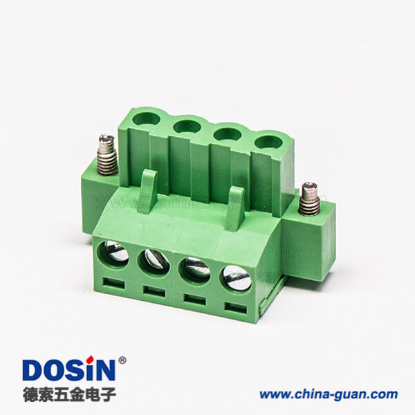 料號:DOSIN-871-0101 標簽:插拔式端子,綠色,直式,4芯,300V,20A,5.00/5.08mm,插孔,螺釘夾緊