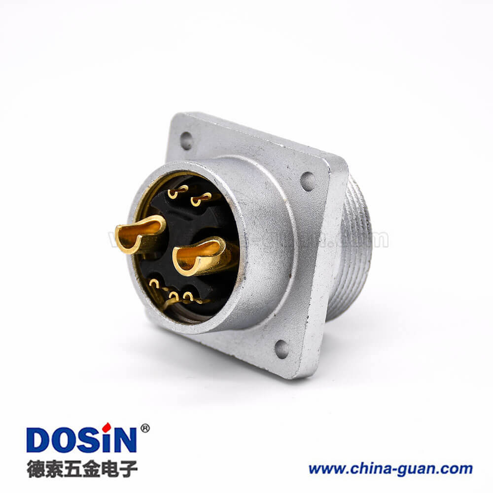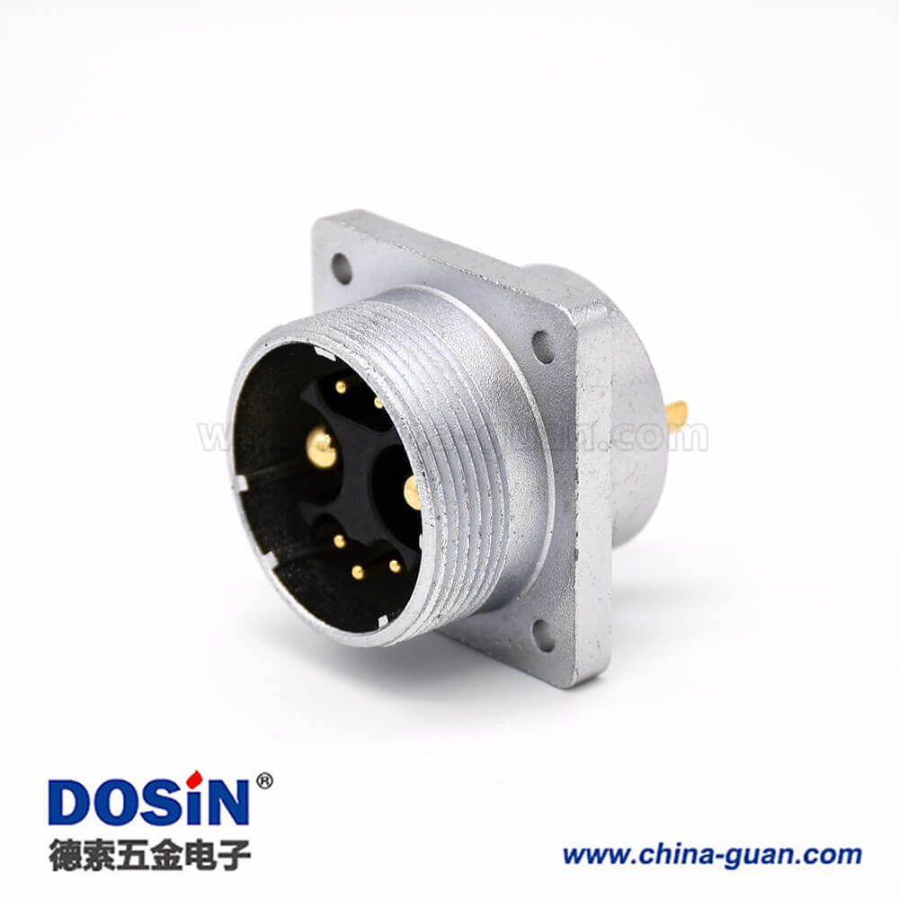 180度連接器P32 7芯公頭插座方形四孔法蘭安裝焊杯接線