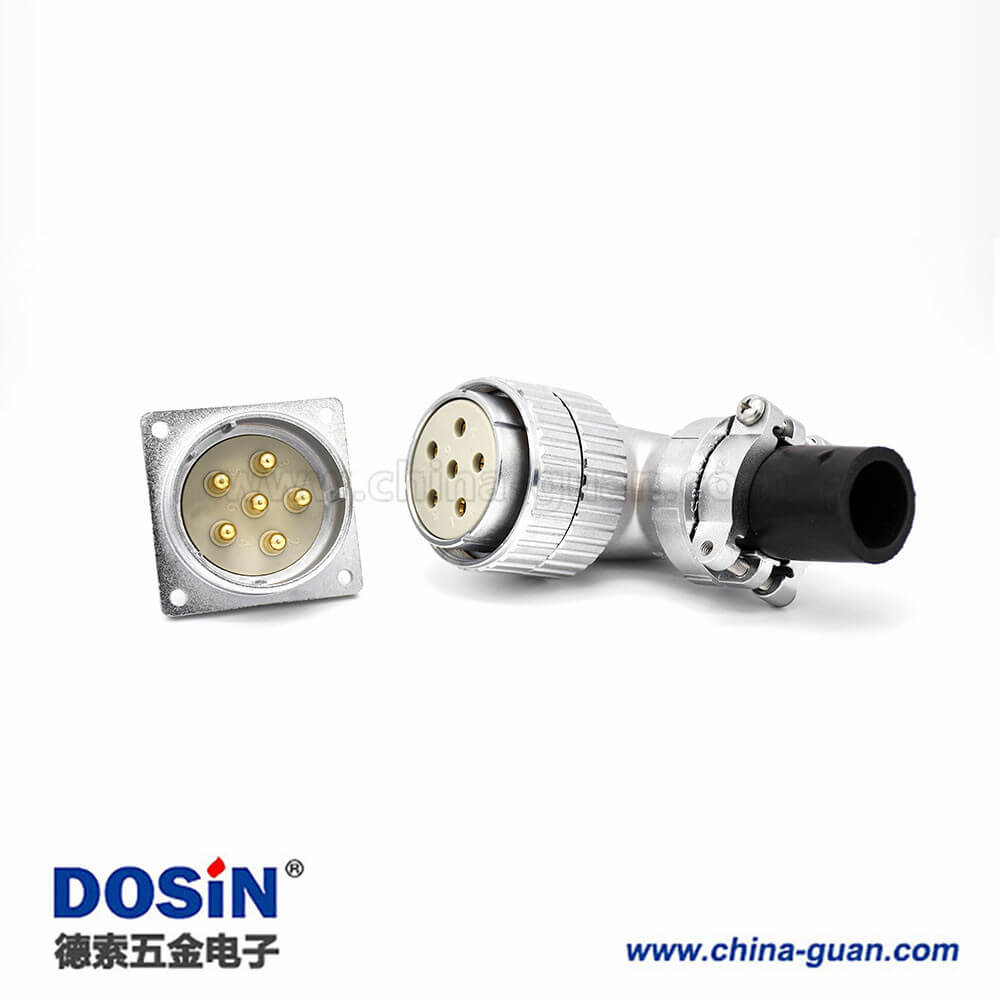 插座母插頭P48 6芯公頭方型法蘭插座母頭接線連接器