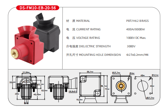 該產(chǎn)品采用PA66阻燃材料外殼。它具有絕緣性和阻燃性。導電部件由黃銅制成,具有很強的導電性,不易過熱。端子連接器由銅制成,這是一種高質(zhì)量的材料,可以保證產(chǎn)品的耐用性和穩(wěn)定性,使其可以長期使用。