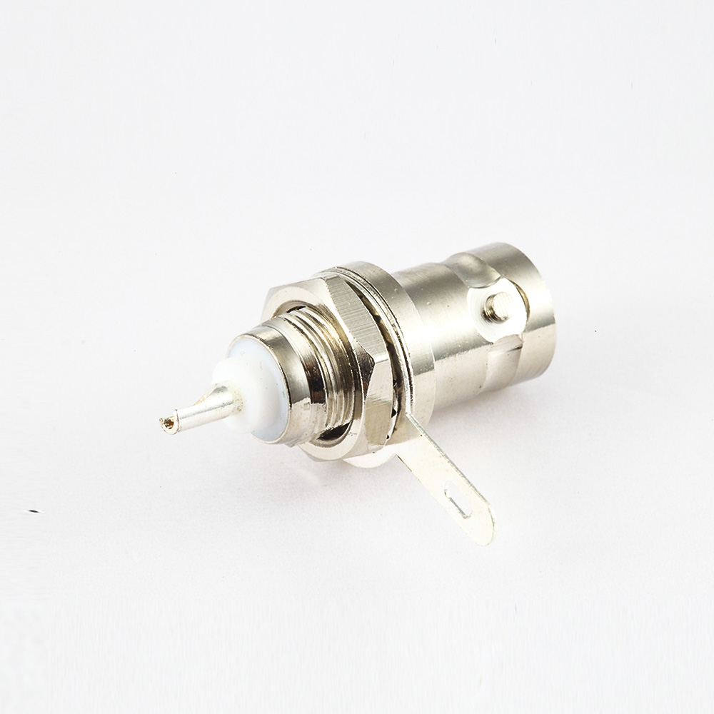 BNC連接器50Ω母頭180度面板安裝后鎖穿墻隔板接線接地