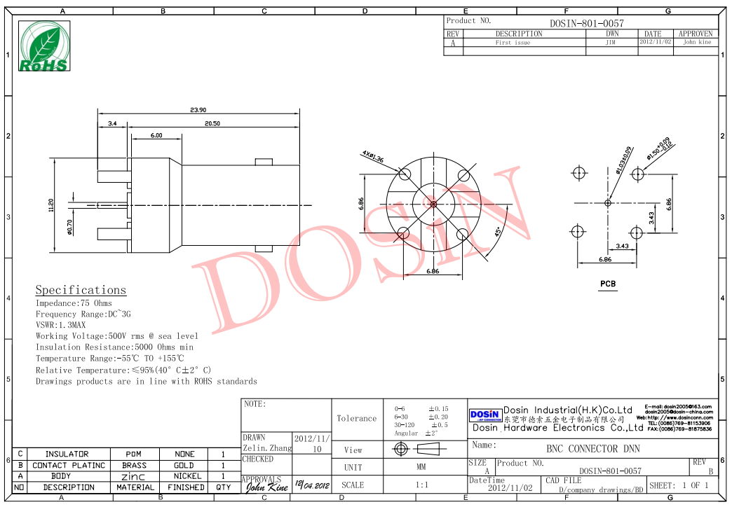 標簽:BNC連接器, 公, 直式 防塵, 銅, 鍍鎳, 標準, 50Ω/75Ω