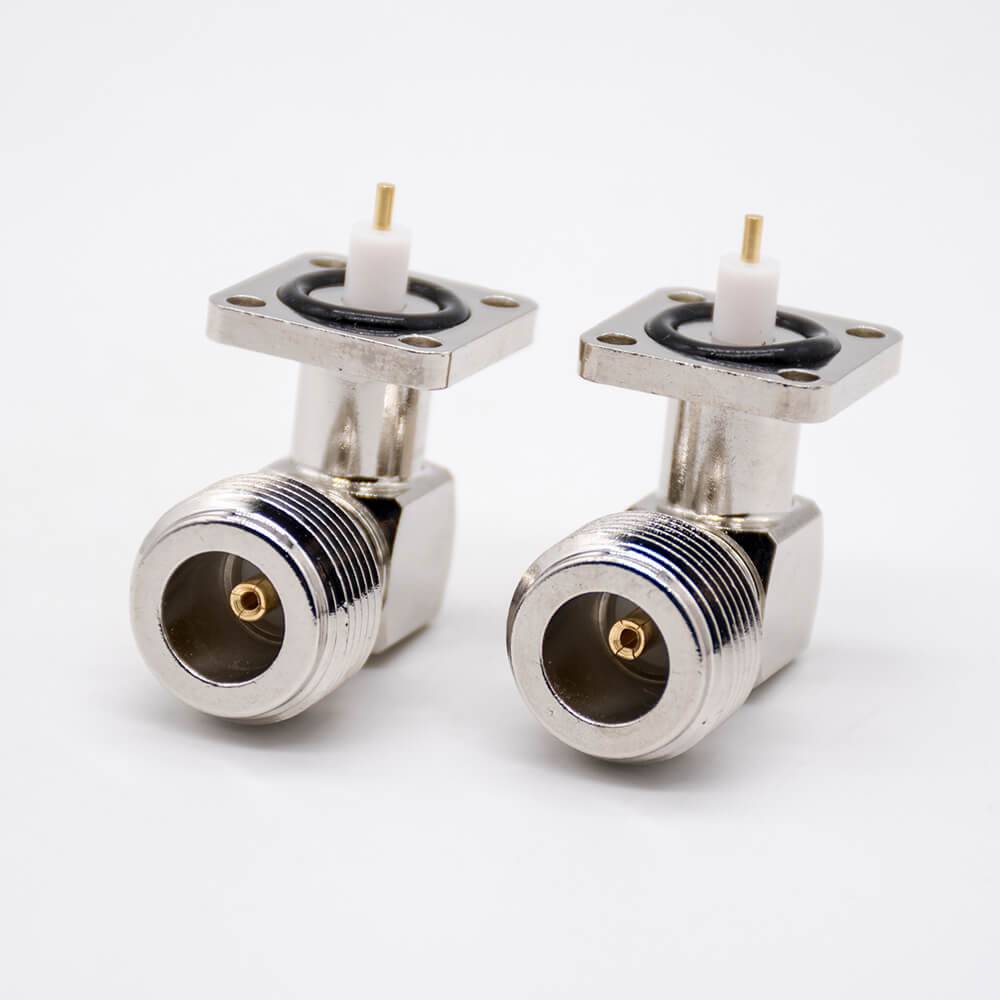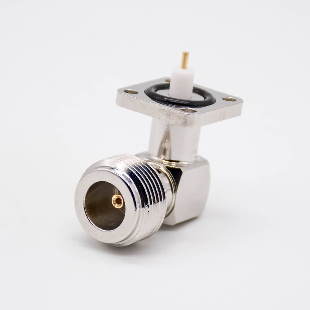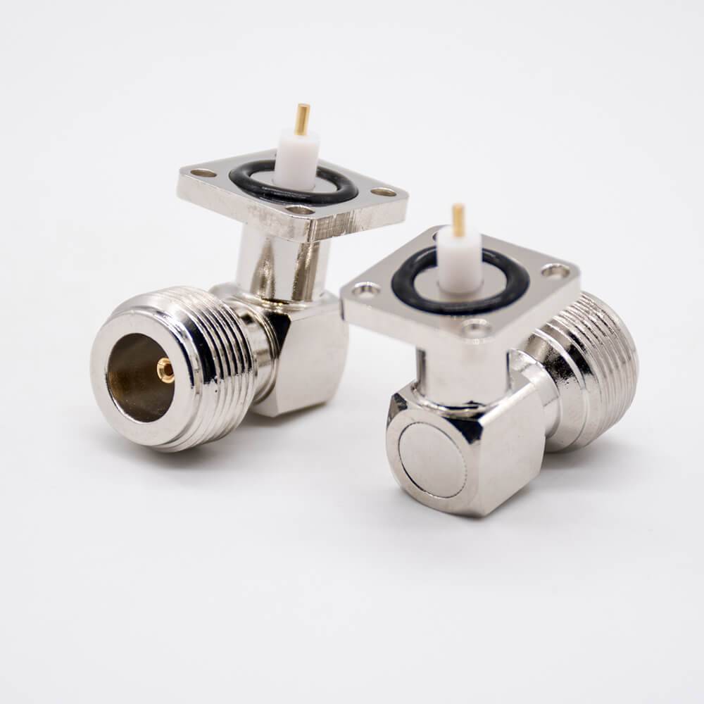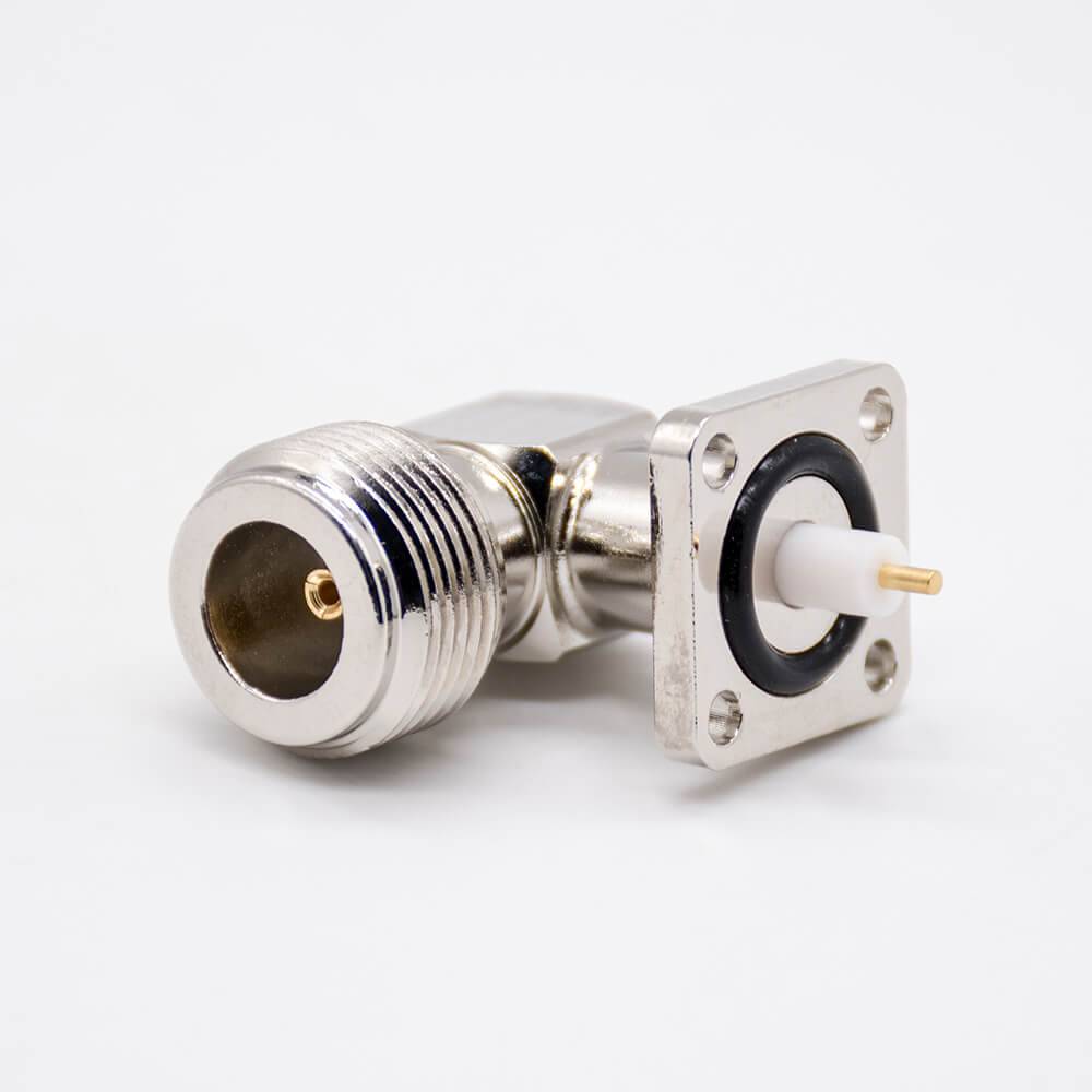 N型母頭連接器彎式PCB板安裝四孔法蘭鍍鎳插板