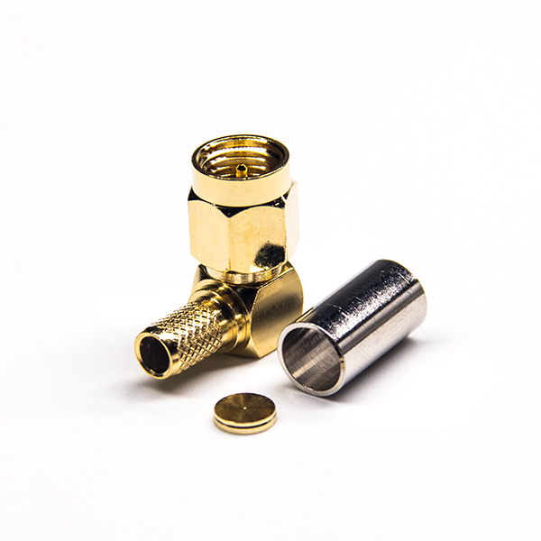 彎式公頭連接器SMA帶套管壓接式表層鍍金接RG58線