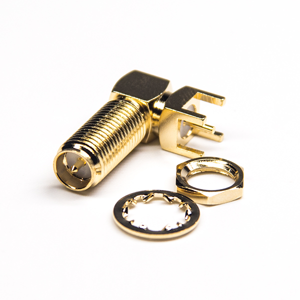 標(biāo)簽:SMA連接器,母頭,90度,插板式,前鎖穿墻,面板安裝,鍍金,50歐姆,反極