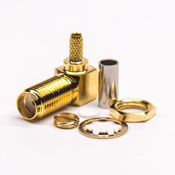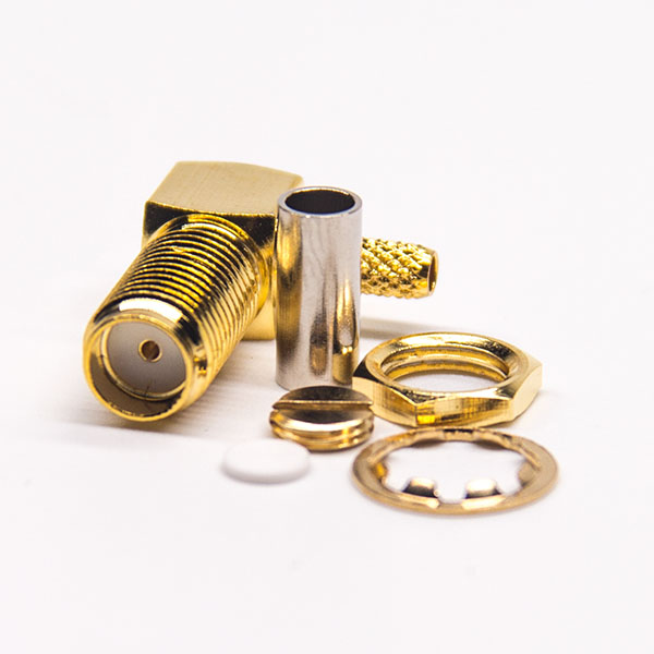 sma頭接線母頭彎式型連接器穿墻式面板安裝壓接同軸線纜