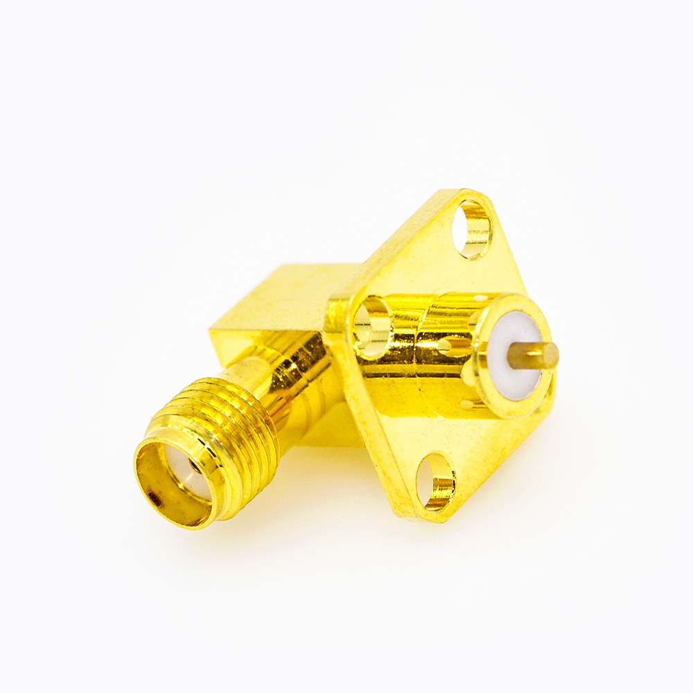 SMA彎式連接器母頭4孔法蘭焊板用于PCB安裝