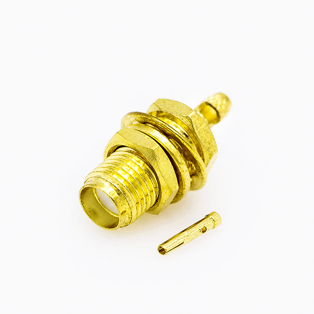 SMA射頻母頭前鎖穿墻直式面板安裝開天窗壓接式用于RG174 / RG316