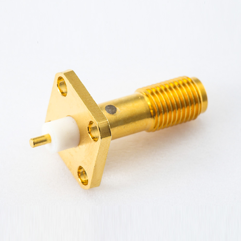 SMA連接器母頭直式PCB安裝焊板4孔法蘭
