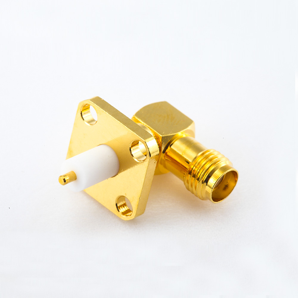 彎式SMA連接器PCB安裝焊板母頭4孔法蘭