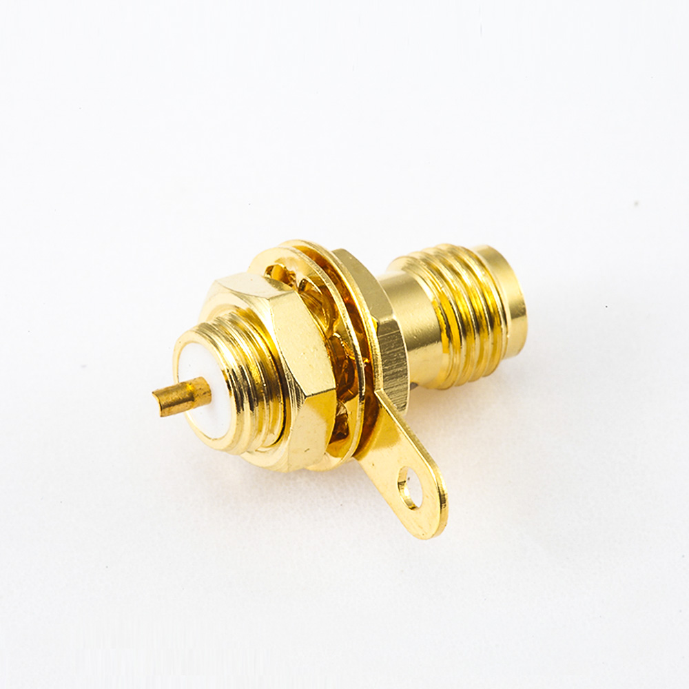 后鎖穿墻SMA母頭直式連接器PCB安裝焊板接地