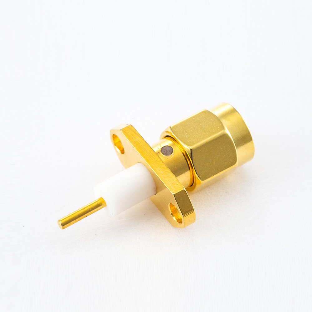 面板安裝SMA連接器公頭直式2孔法蘭PCB安裝焊板