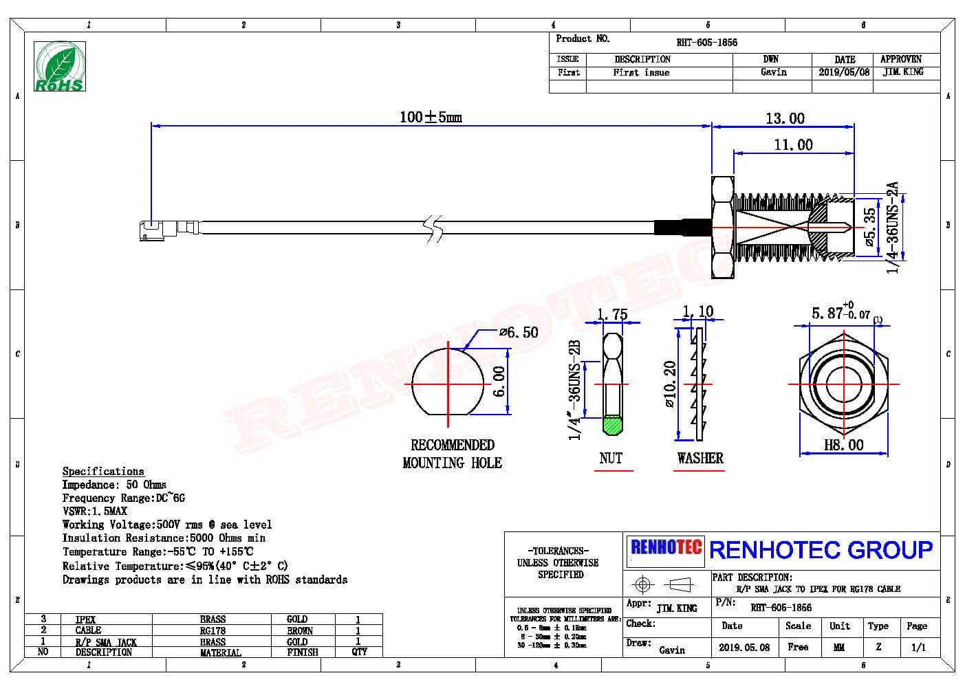 料號:EB-101-0210 標(biāo)簽:RF線材,RG178同軸線纜,SMA直式連接器,Ipex彎式連接器,反極母轉(zhuǎn)母