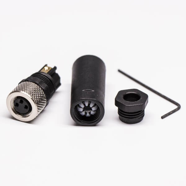 料號:EB-400-1044 標簽:M8,3芯,A編碼,組裝接頭,母,現場組裝式,直式,螺絲鎖線,不帶屏蔽