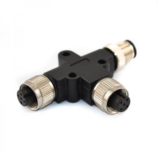 料號:EB-400-2041 標簽:M12轉(zhuǎn)接頭, A編碼, 5芯, 公轉(zhuǎn)雙母, T型, M12轉(zhuǎn)M12