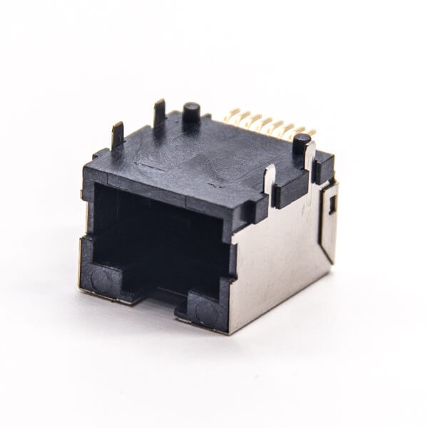 單口rj45母座90度不帶燈貼板式接PCB板帶屏蔽
