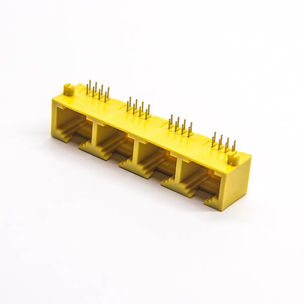 標簽:RJ45插座,8P8C,4端口,1*4,彎式90°,觸頭鍍金,插板,PCB板安裝,非屏蔽,不帶燈,不帶濾波