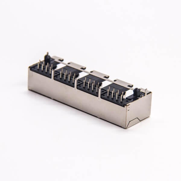 標(biāo)簽:RJ45插座,8P8C,4端口,1*4,彎式90°,觸頭鍍金,插孔,PCB板安裝,帶屏蔽,不帶燈,不帶濾波