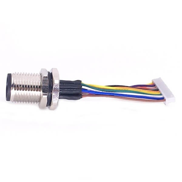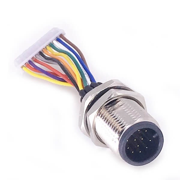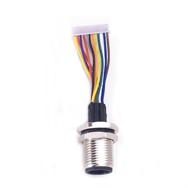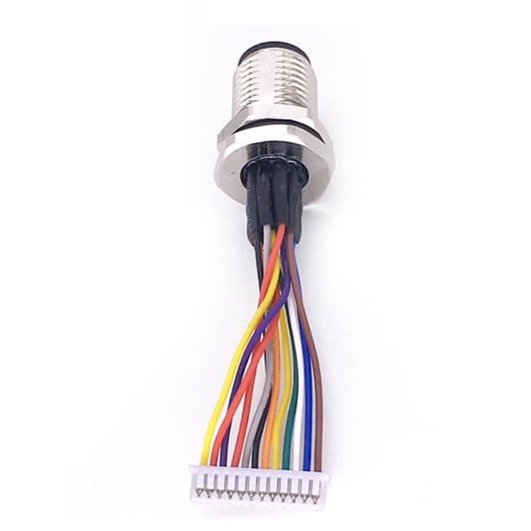 料號:M12-12-D-P-2-S-F-W 標簽:M12,板端插座,A Code,12芯,直式,公頭板端,焊線,前鎖板,20CM