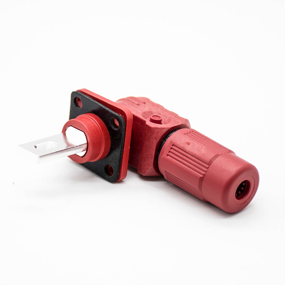 大電流防水連接器350A 12mm紅色I(xiàn)P65彎式插頭插座銅牌帶孔