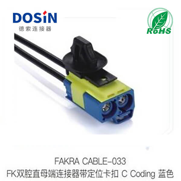 Fakra雙腔直母端連接器帶定位卡扣C-Coding藍色定制打樣
