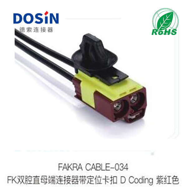 Fakra雙腔直母端連接器帶定位卡扣D-Coding紫紅色定制打樣ISO認證汽車連接器供應商廠家批發(fā)價格,江門德索連接器有限公司產(chǎn)品達到ROHS、UL、REACH標準。超17年 Fakra雙腔直母端連接器帶定位卡扣D-Coding紫紅色定制打樣生產(chǎn)經(jīng)驗,免費送樣,交期快,大量現(xiàn)貨庫存,立即撥打電話400-6263-698咨詢。