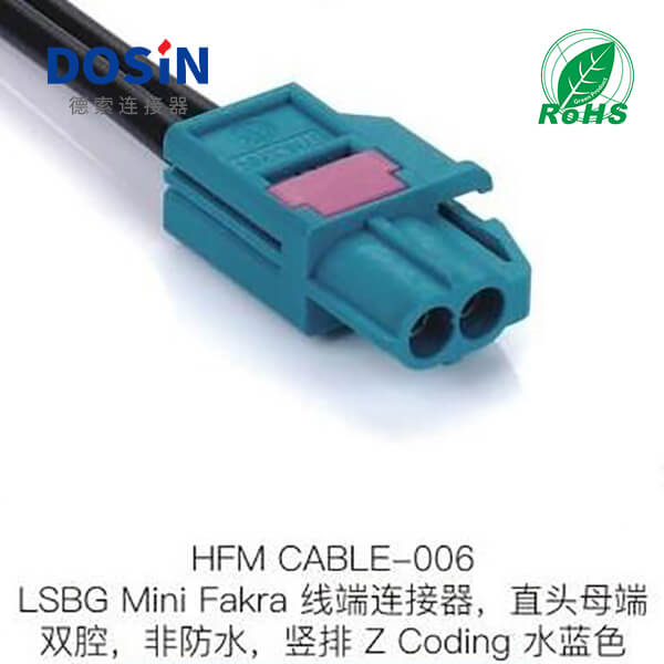 LSBG-Mini-Fakra線端連接器直頭母端雙腔非防水豎排Z-Coding水藍(lán)色生產(chǎn)工廠