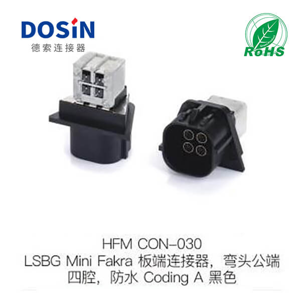 LSBG-Mini-Fakra板端連接器彎頭公端四腔防水Coding-A黑色定制打樣