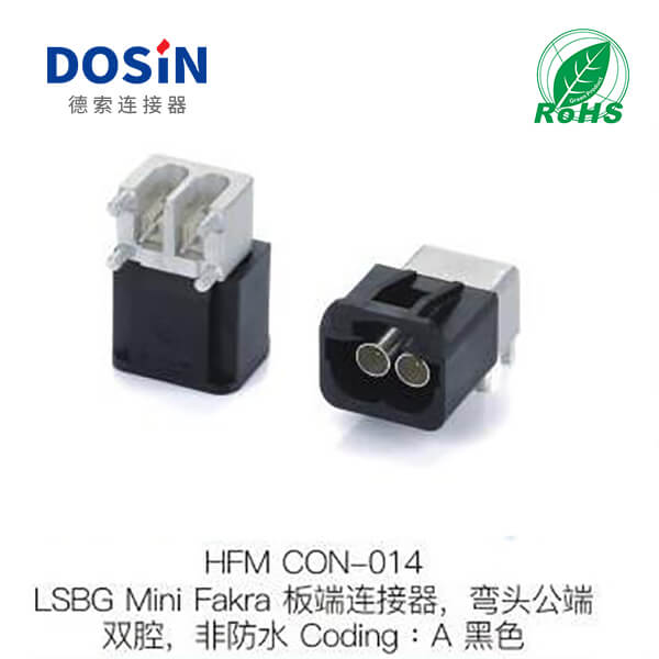LSBG-Mini-Fakra板端連接器彎頭公端雙腔非防水Coding-A黑色制造廠商