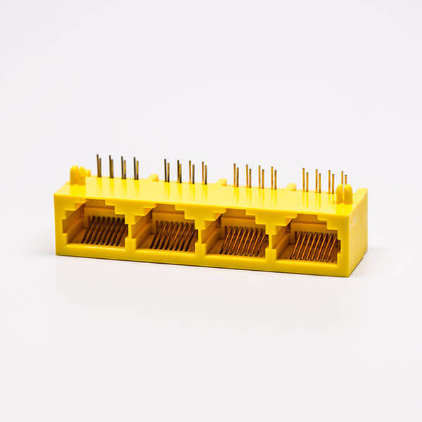 rj45母座pcb黃色全塑彎式4口8P不帶燈