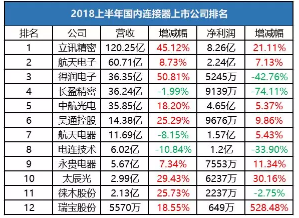 具體排名方面,立訊精密上半年實現(xiàn)營收120.25億,位列榜單第一名,同時也是榜單內(nèi)唯一一家營收破百億的連接器上市公司。航天電子則以60.71億的成績排名第二位,而得潤電子營收雖然達到36.35億,且位列榜單第三名,但凈利潤僅5245萬,同比下降了42.76%。其余排名情況請參考下表: