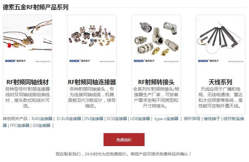 文中的國內(nèi)連接器廠商排名數(shù)據(jù)來自網(wǎng)絡(luò),若有不嚴謹?shù)牡胤竭€請諒解。了解更多與連接器廠家排名相關(guān)的文章,請關(guān)注我們的網(wǎng)站最新動態(tài)。德索五金電子,成立已有十四年,所生產(chǎn)的連接器產(chǎn)品均通過ISO認證,符合國際環(huán)保要求,承諾所有用戶一年內(nèi)免費質(zhì)保,售后體系完善,值得您的信賴。只要您下單,我們即可快速投入生產(chǎn),讓你快速拿貨,還在猶豫什么,快來與我們合作吧。