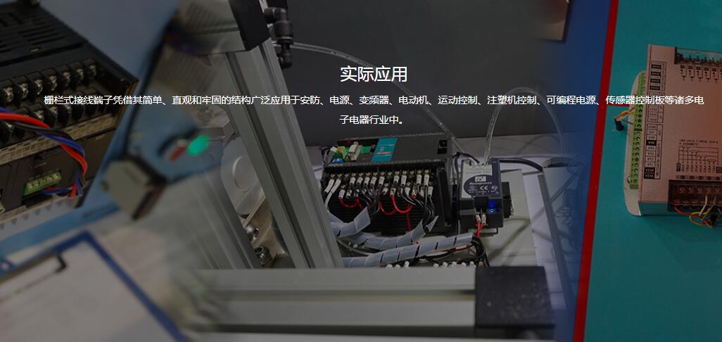 實際應(yīng)用:柵欄式接線端子憑借其簡單、直觀和牢固的結(jié)構(gòu)廣泛應(yīng)用于安防、電源、變頻器、電動機、運動控制、注塑機控制、可編程電源、傳感器控制板等諸多電子電器行業(yè)中。