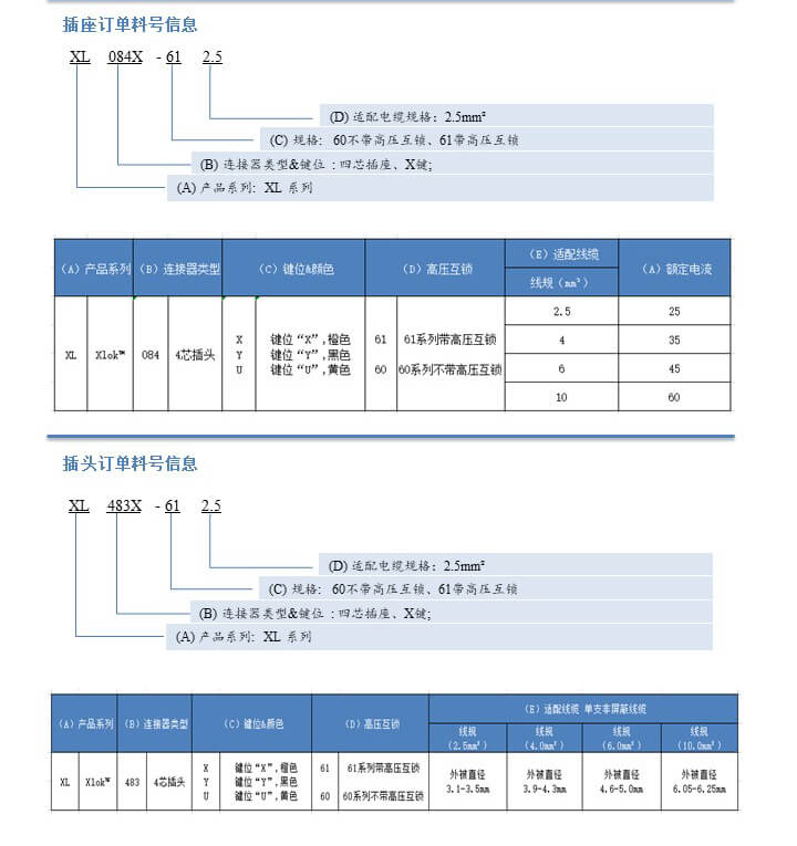 如果您覺得XL60 四芯系列,無法滿足您的需求,可以咨詢我們的工防師,讓他們根據(jù)您的需求推薦適合您的產(chǎn)品。XL60 四芯系列產(chǎn)品,可選電流分別是25A,35A,45A,60A,可選直式,可選擇帶不帶互鎖功能。